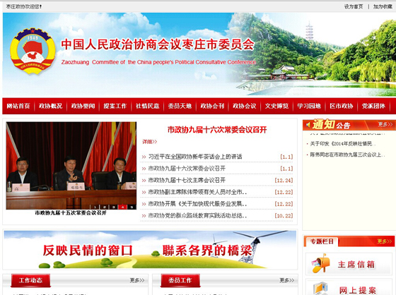 中國人民政治協(xié)商會議棗莊市委員會簡稱棗莊政協(xié)或棗莊市政協(xié),中國人民政治協(xié)商會議(簡稱“人民政協(xié)”),是中國人民愛國統(tǒng)一戰(zhàn)線的組織,是中國共產(chǎn)黨領導的多黨合作和政治協(xié)商的重要機構。人民政協(xié)由中國共產(chǎn)黨、各民主黨派、無黨派民主人士、人民團體、各民族和各界的代表,臺灣同胞、港澳同胞和歸國僑胞的代表以及特別邀請的人士組成。